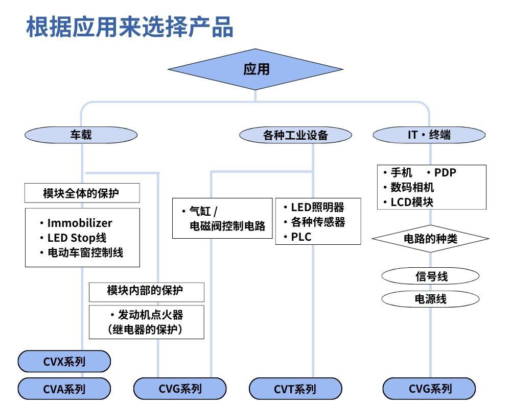 各种半导体器件的过电压的保护,各种机器的感应雷浪涌的保护,汽车喇叭继电器开关浪涌和静电浪涌吸收。
